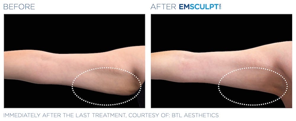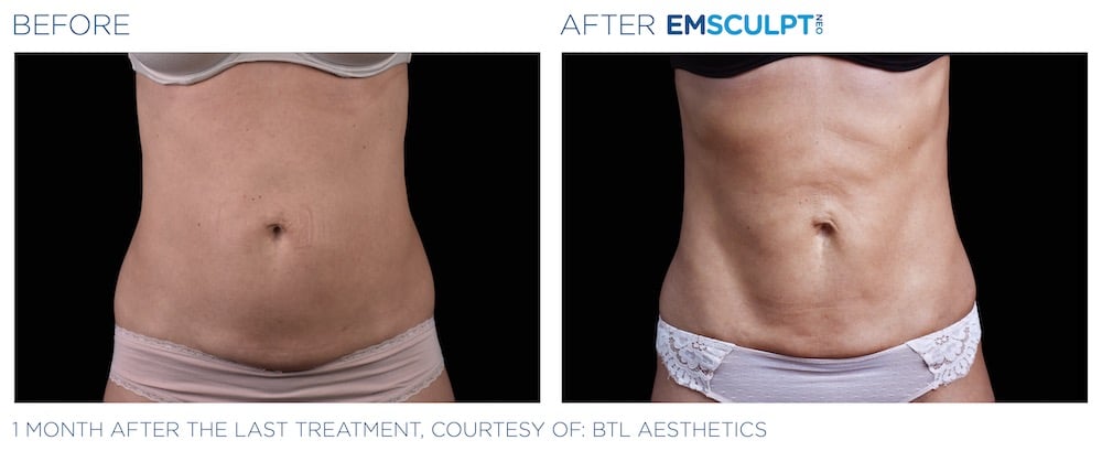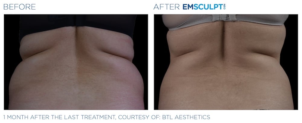 Emsculpt Neo is the only non-invasive technology that simultaneously uses radiofrequency and HIFEM+ energies to eliminate fat and build muscle.