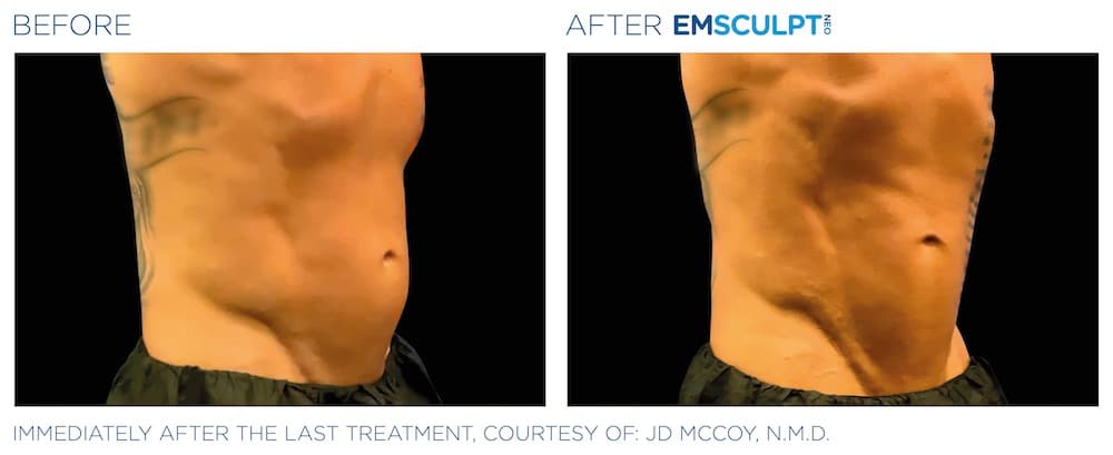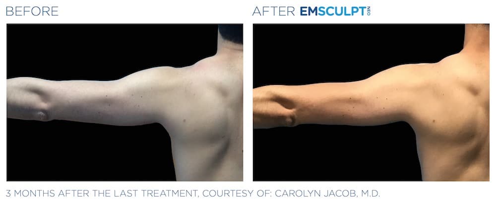 Most patients see the most dramatic toning, fat loss, and muscle mass growth results by targeting their abdominals, buttocks, arms, thighs, and calves.
